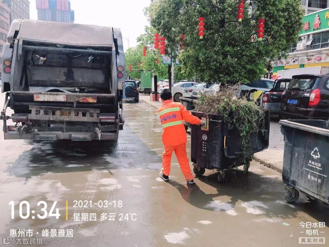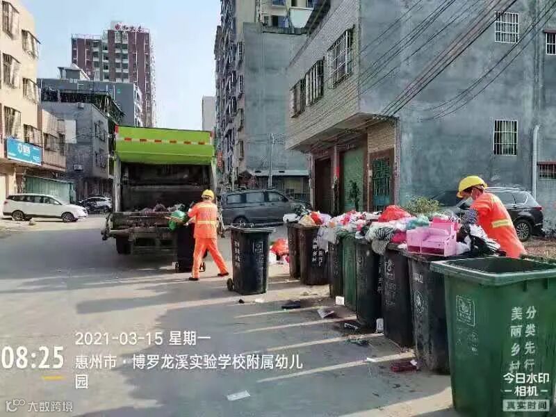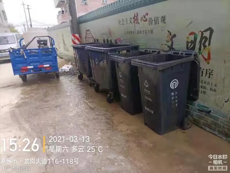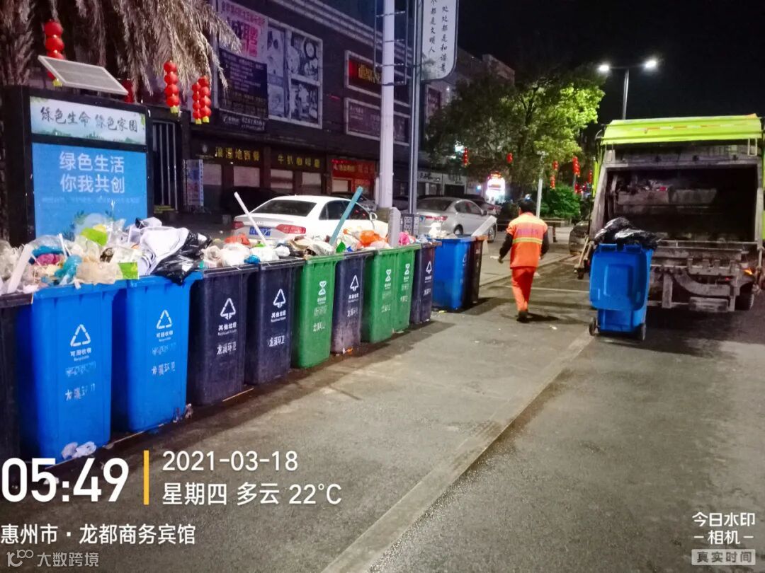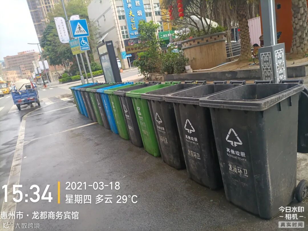 3、增加垃圾清运频次,垃圾不落地;桶点周边要整洁,垃圾桶点统一摆放,正面对外,桶点踩刹。