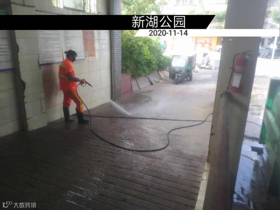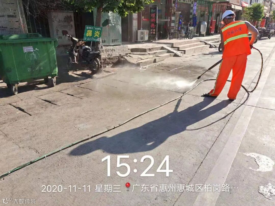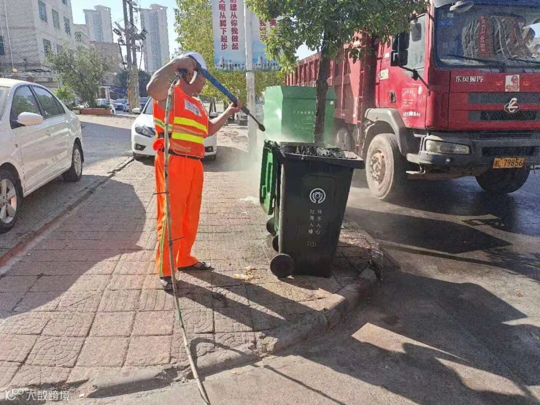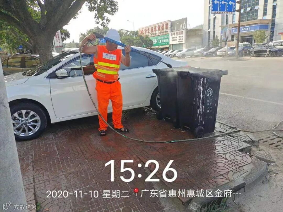 高压冲洗停车场及垃圾桶点