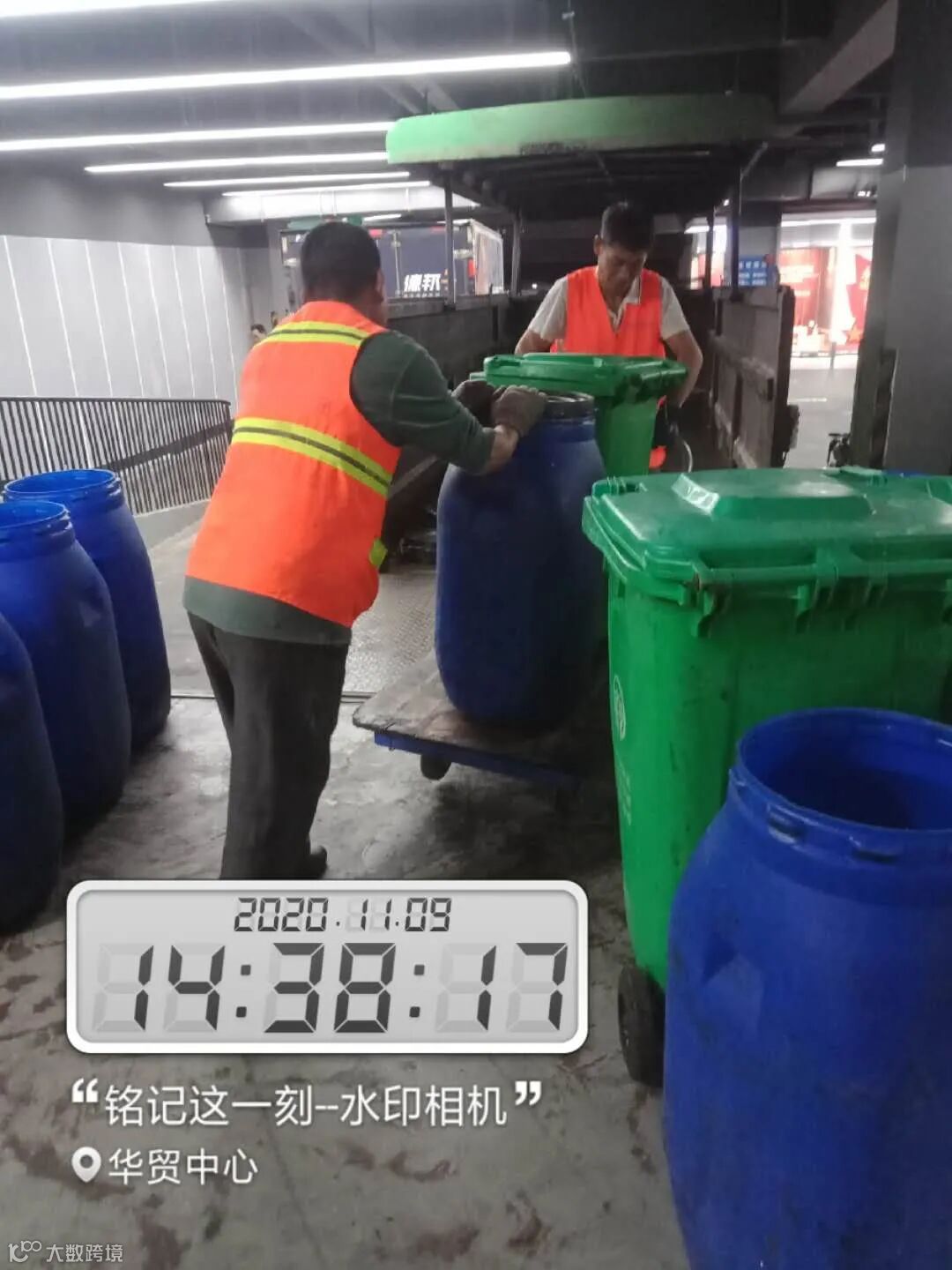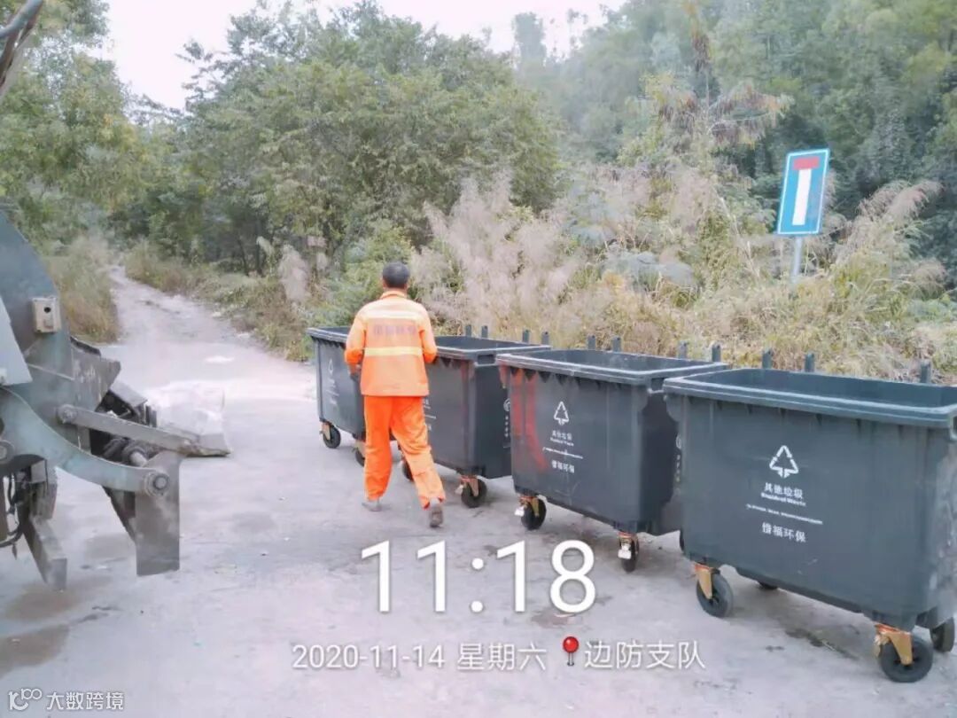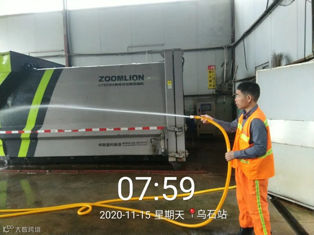 高压冲洗停车场及垃圾桶点