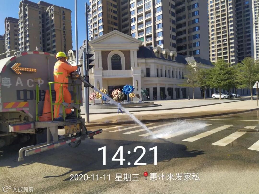 2、机械化保洁白天夜间持续清扫冲洗作业,加强泥沙污染路段冲洗及慢车道落叶清扫频次;
