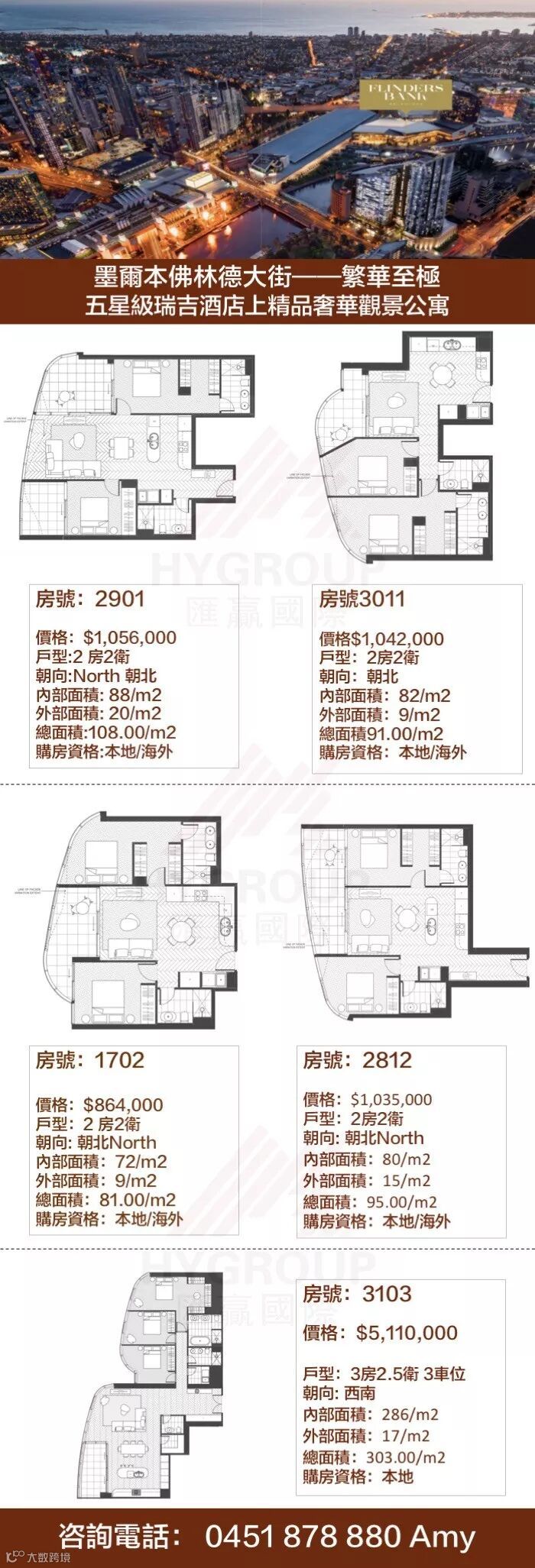 Flinders Bank为城市综合体项目,是集商务、住宅、餐饮、娱乐为一体的多功能物业。顶层为奢华阁楼,豪华室内装潢,配置四车库,高层为精品住宅公寓,一室、两室及三室户型可供选择。