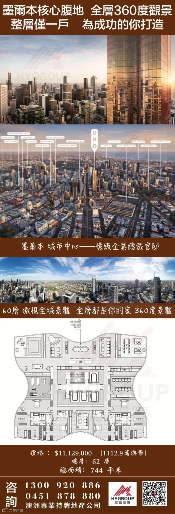项目西面坐拥Docklands海港美景,北面鸟瞰墨尔本市中心,东面和南面俯视雅拉河畔蜿蜒曲折,塔一、塔三15层以上视野无遮挡,塔二28层以上窗外景色净收眼底。