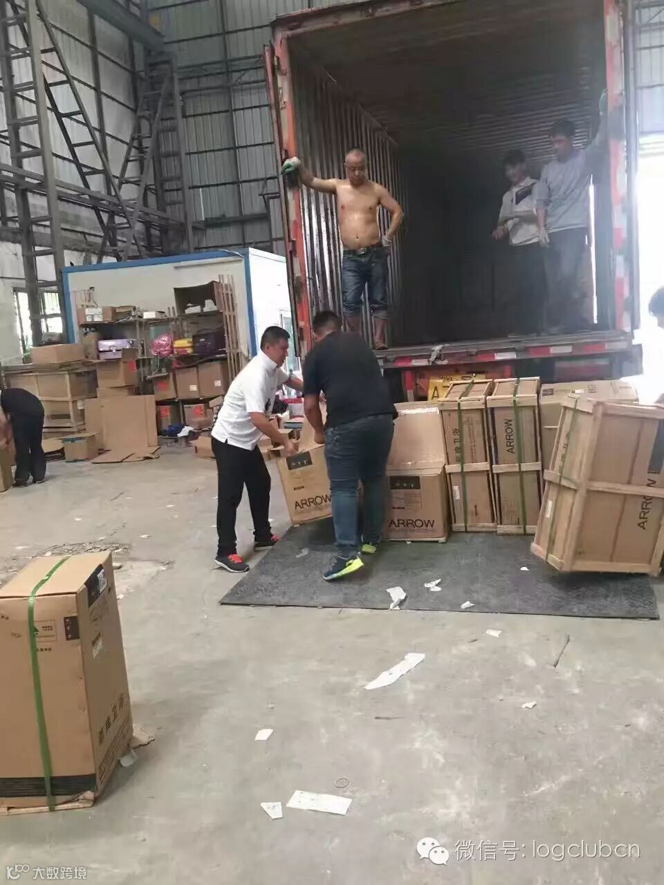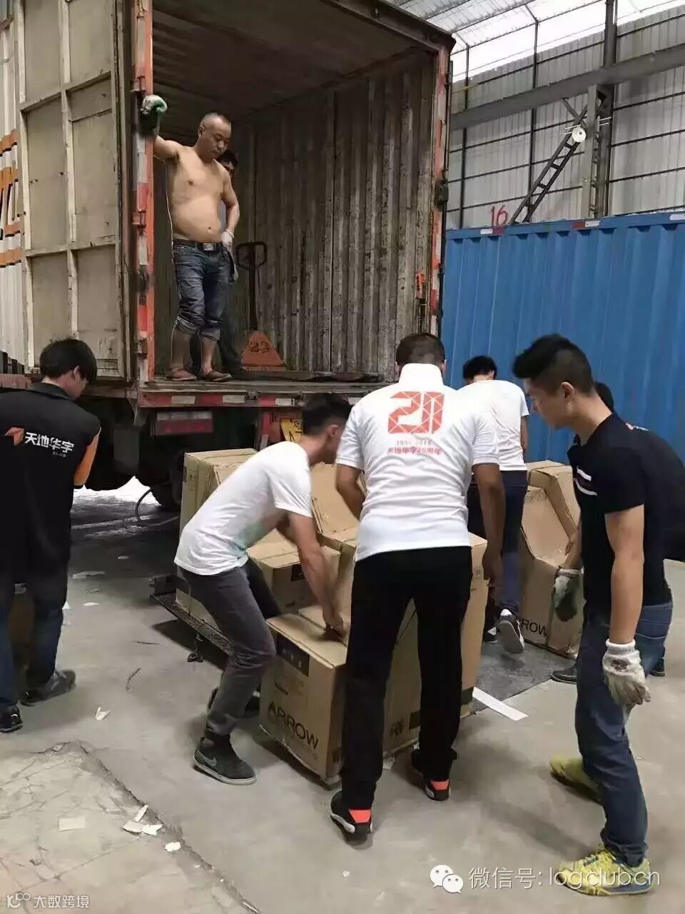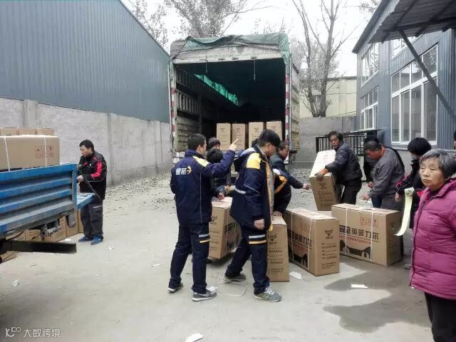 图为苏北小哥们齐动手,共同对快件进行装车配送。