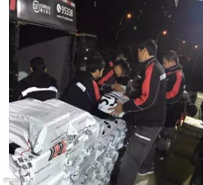 11月11日,下起了雨夹雪,吉林区的小哥不畏严寒、不辞劳苦,第一时间抵达客户的仓库及店里,去包件、装车。