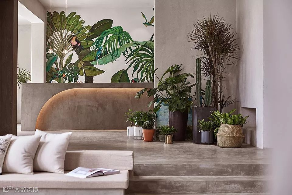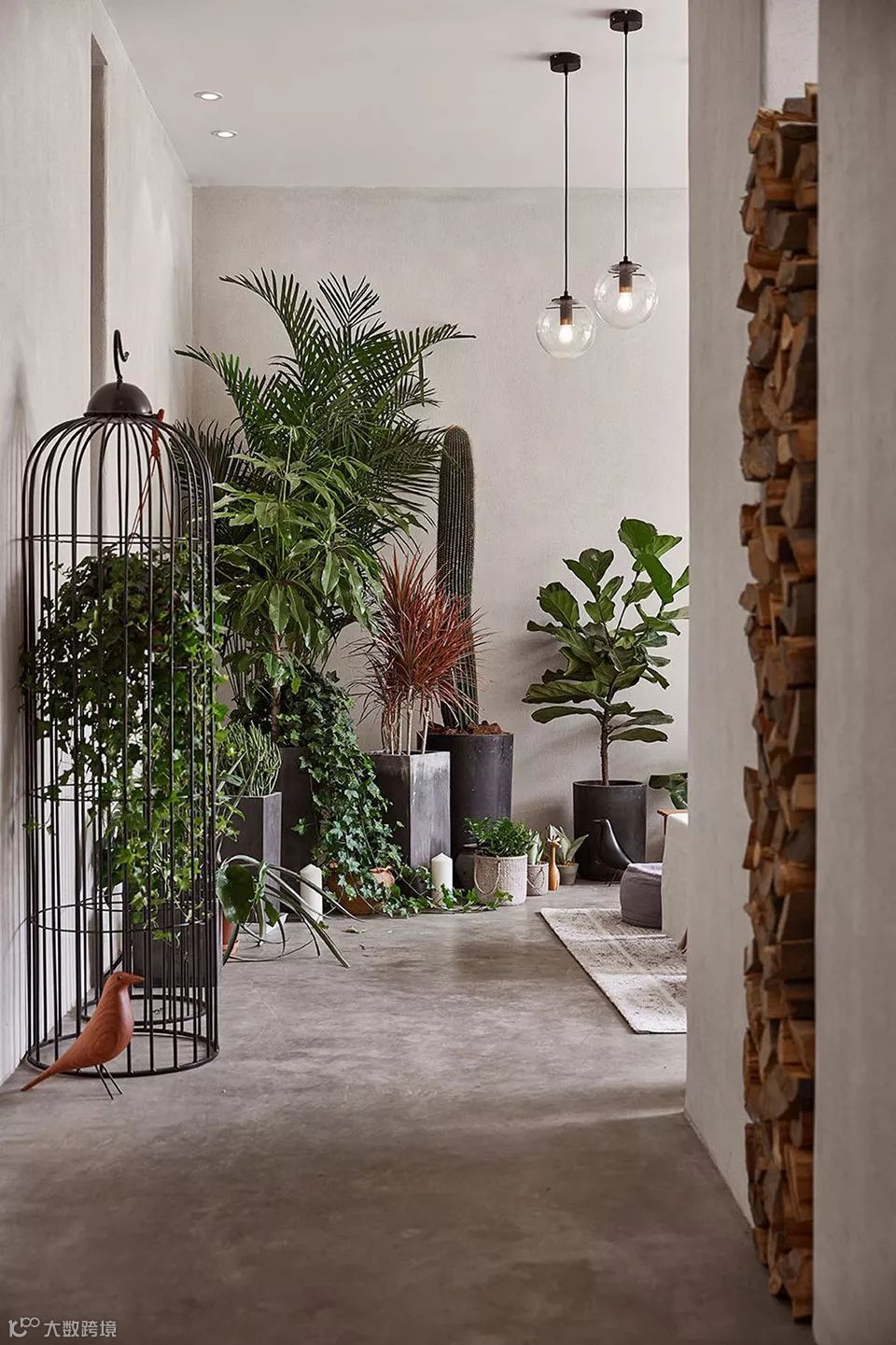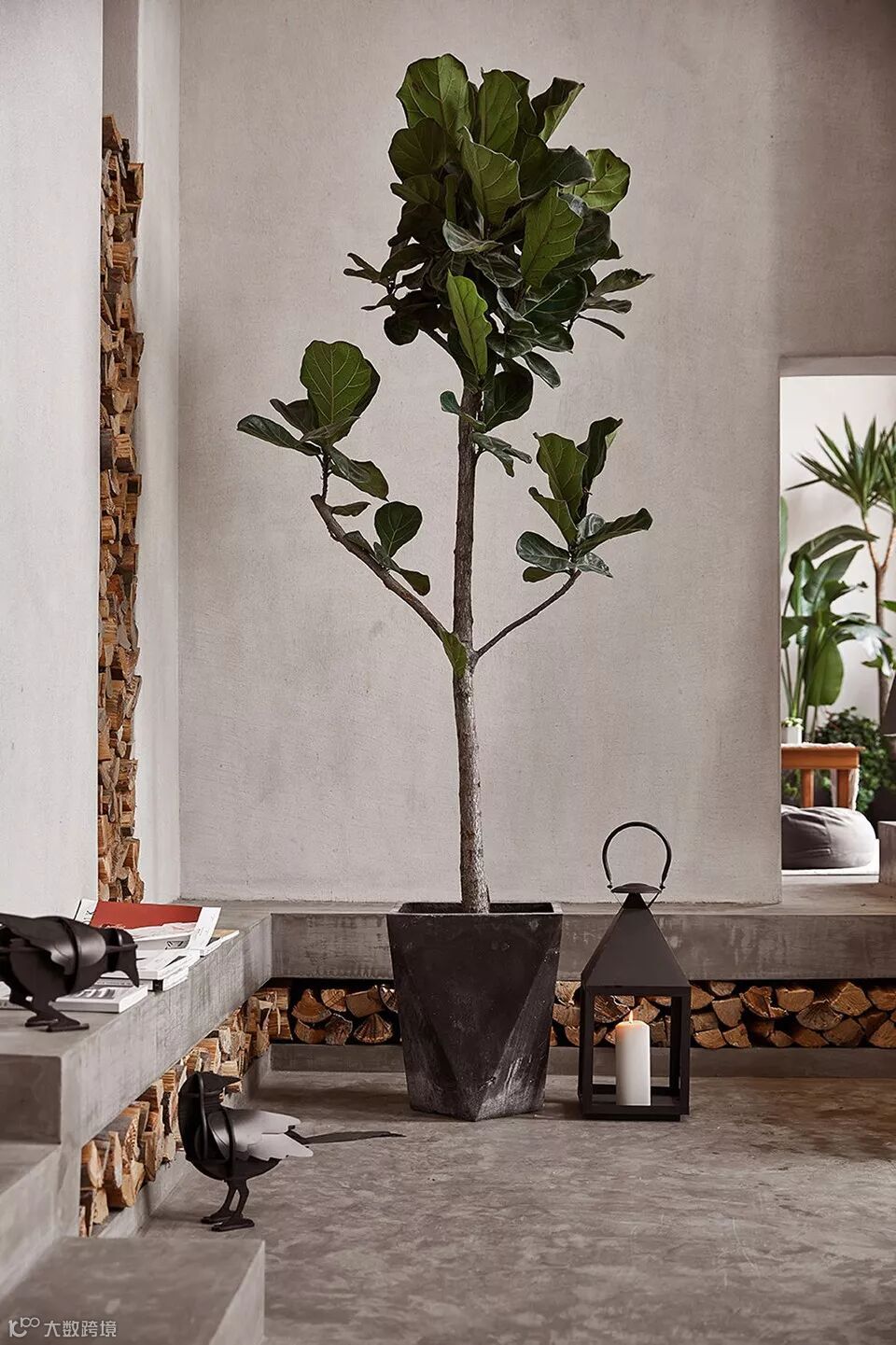 植物的生长悄无声息,每一寸枝丫的形态都随心所欲,与方正笔直的室内线条形成鲜明的对比,“野”“奢”碰撞,妙趣横生。