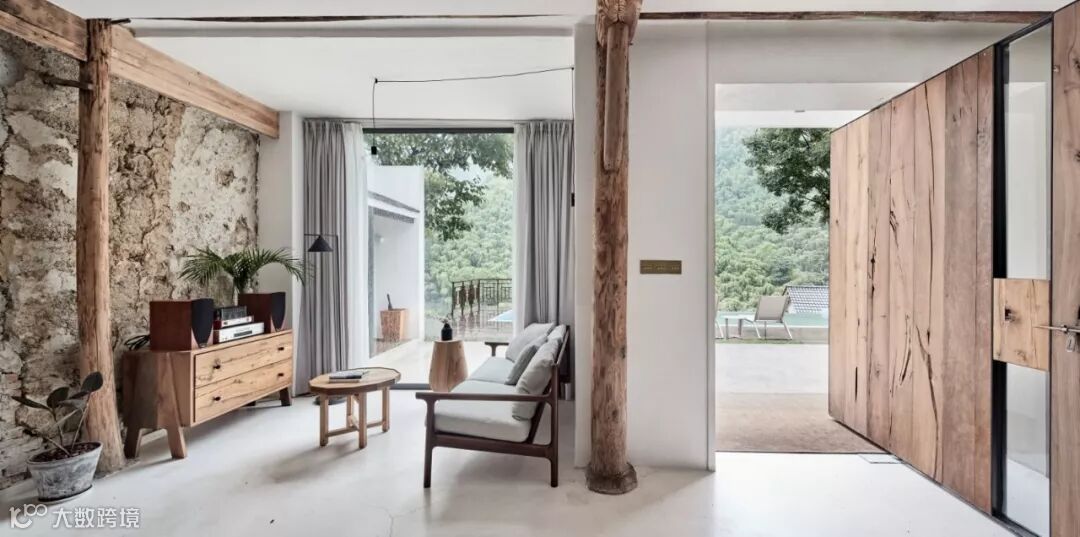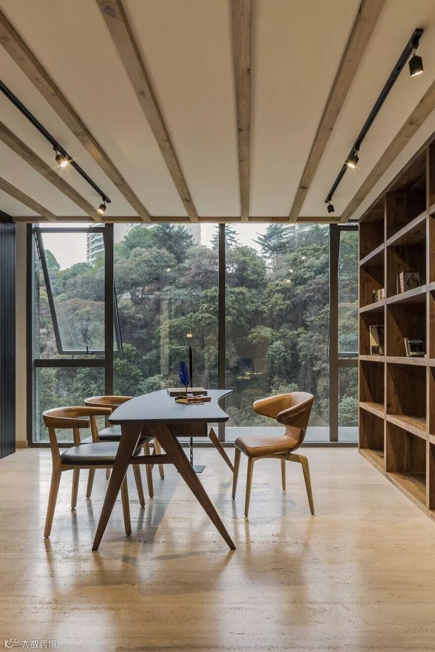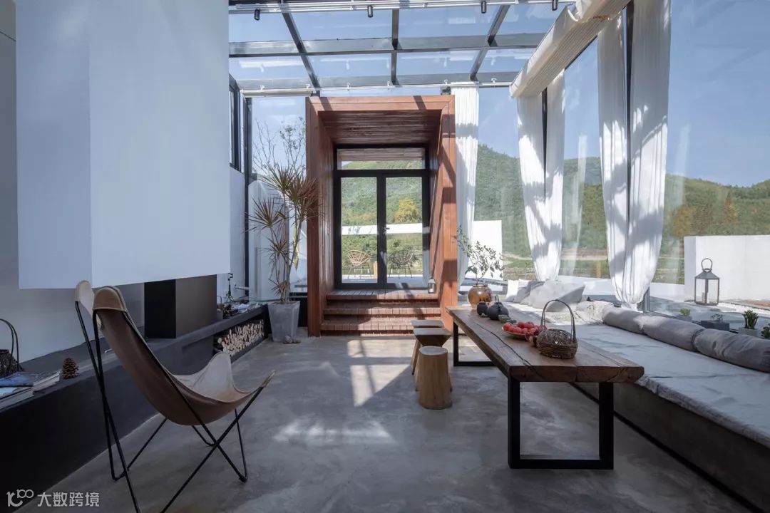 如果室外风景够美,可以装一面落地玻璃窗,沟通内外,与自然对话。一窗之隔,文明与自然的边界被无限模糊,户外的风景浸润整个室内空间,“野”味肆意。