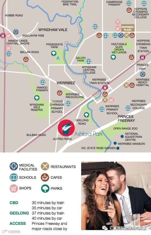 Ashford Park 地理位置位于墨尔本西区 Werribee , 距离市中心大约30分钟,项目开发将分5期180栋别墅 ,大型社区,周边大型园林公园,树木衬里的街道,Werribee镇中心,靠近Werribee火车站,购物中心、餐馆、咖啡馆和娱乐区 生活配套齐全 。被Werribee河公园围绕,有步行道、自行车道、Chirnside公园、体育设施、野餐区、阴凉的路径和大型泻湖。由知名开发商打造的大型综合社区,周边未来规划大学城,未来片区将以教育及科技为主题,目前众多的基础建设已如火如荼建设,未来区域将更完善及繁华,目前正是入市良机。