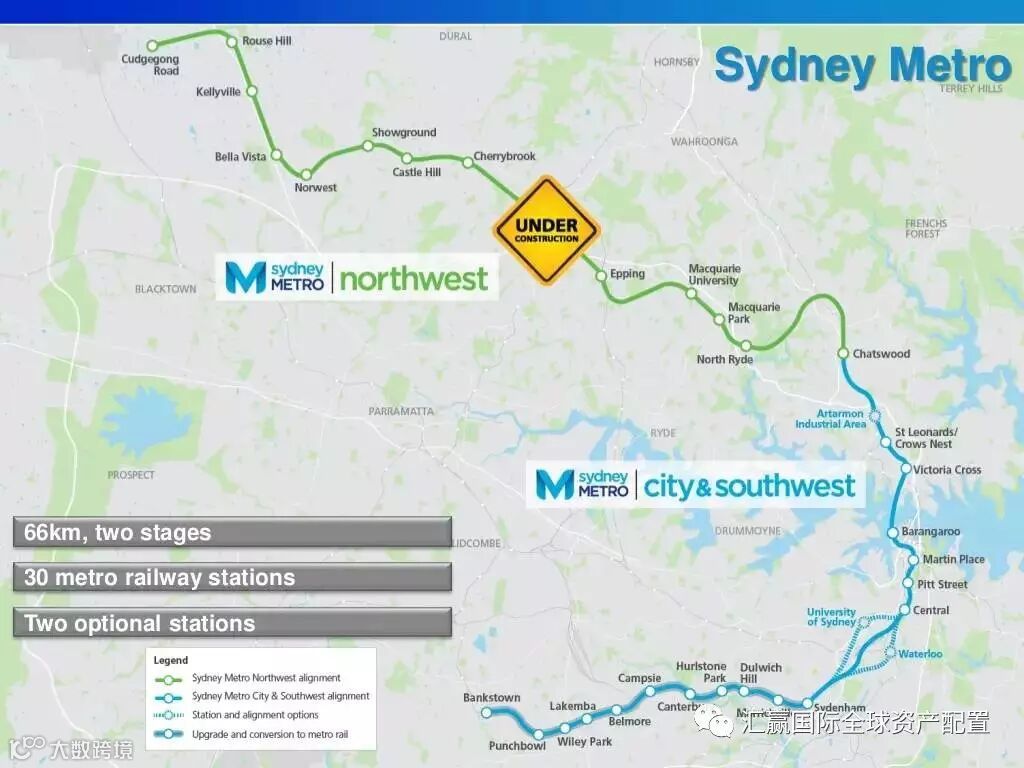 悉尼西北增长中心的交通部分最为重要的就是西北铁路线(SydneyNorth West Rail Link),这条铁路线无论从投资规模、运载能力、车厢设计、发车频次、配套建设等,都完全不同于悉尼甚至全澳洲的任何一条已有铁路线,所以必须用专门的章节来讲述。