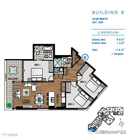 Lot :638 3房2厅2卫 1车位 110平米 朝向西 $ 135.4万 AUD