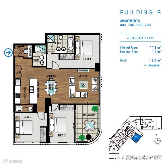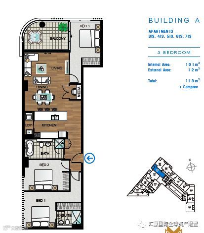 Lot 313: 3房2厅2卫 113平米 1车位 朝向西北 $ 106.8万AUD