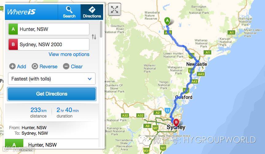 猎人谷 距离 悉尼驱车 仅仅车程2小时40分钟