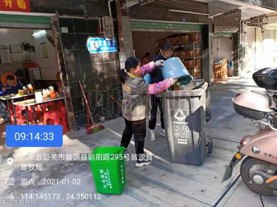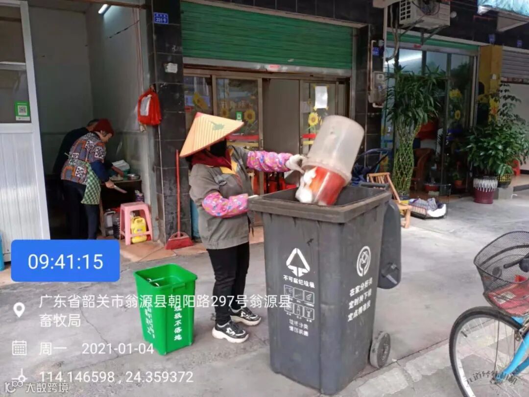 每天到建设一二路,朝阳路,龙英路,环城北路店铺上门收集垃圾,宣传垃圾干湿分离。