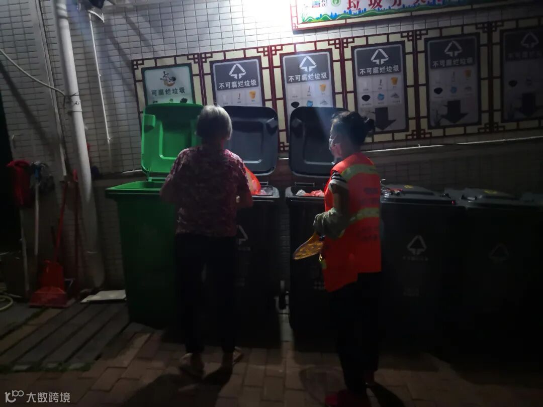 2、25号上午沟通东华寺厨余垃圾干湿分离及投放。晚上配合第一网格入户龙华新村,幸福南路及周边商铺垃圾不落地,干湿分离投放。