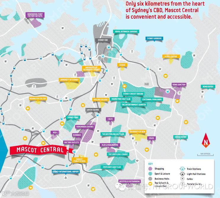 5、绿色广场距离Mascot 火车站仅仅一站之遥,未来绿色广场规划对该区域房地产发展有明显提振作用;