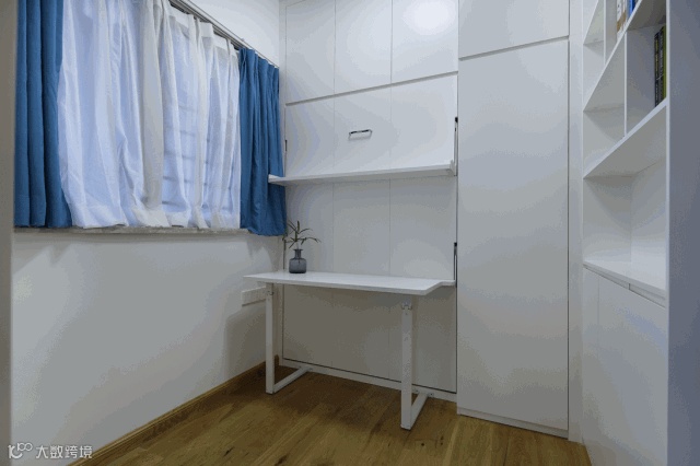 书房空间不大,但设计师却把壁挂床和书桌做了结合设计,再加上满墙的柜子,小户型的书房同样能非常实用。