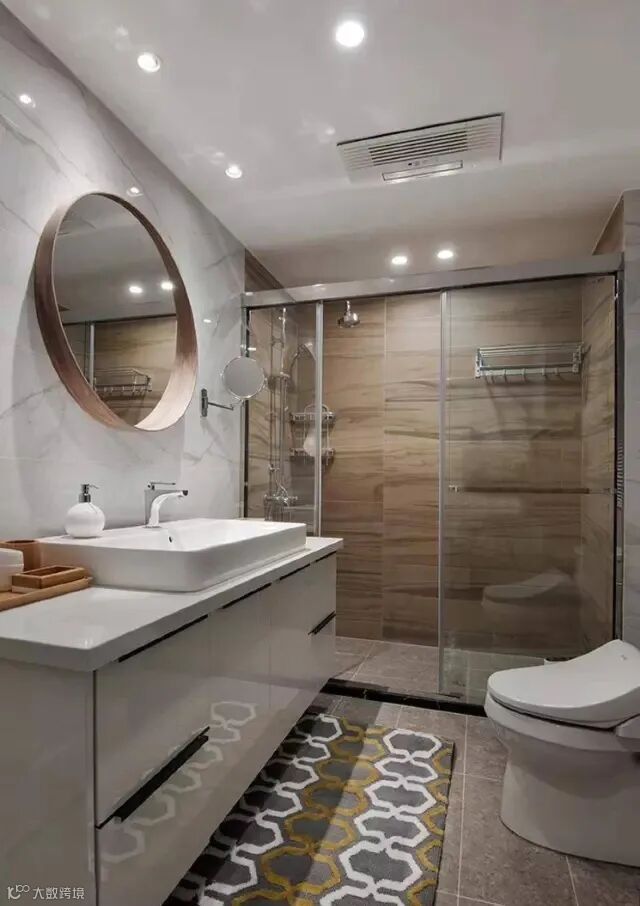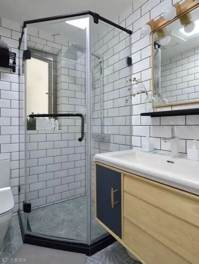 任何风格的卫生间都可以用玻璃隔断,将淋浴区和其他部分分开,把干湿分离做到位,通透明亮,可以让光线透过,卫生间看起来就不会那么小。