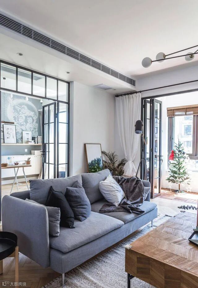 原本面积有限的客厅,瞬间通透明亮了起来,不需要改变其他东西,只需要把一半的墙壁变成玻璃隔断就能做到。
