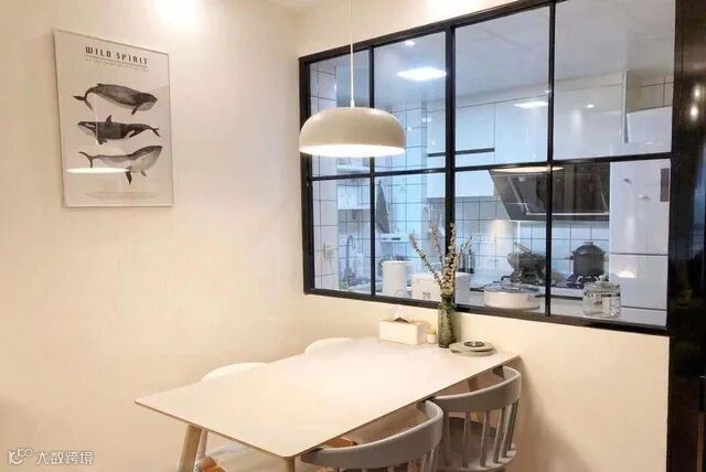 厨房是安装玻璃隔断最高的空间之一,即便在下厨的时候,也不影响与家人之间的互动,在阻挡油烟的同时,也能很好的连接餐厅,增加空间的采光度。对于纠结是否要选择开放式厨房的宝宝们,不妨采用这个方法。