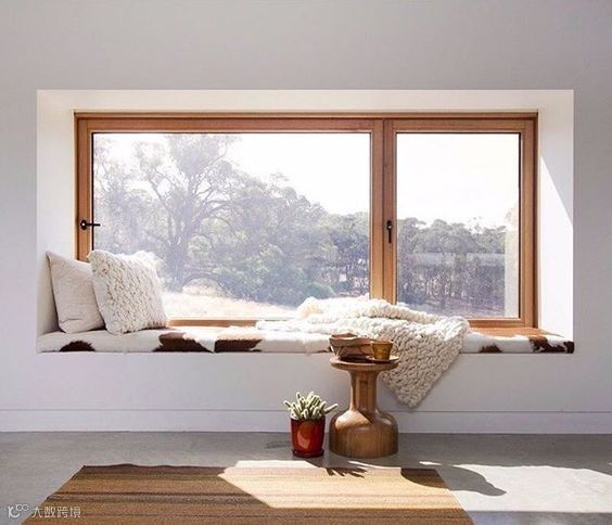 飘窗,放上软垫就是一个榻榻米。不放软垫时,可以将绿植放在窗台上,接受阳光和空气的滋润。左右两侧收拾好,真是一道美好的风景线。不过这样的设计,缺点就是容易堆积灰尘。
