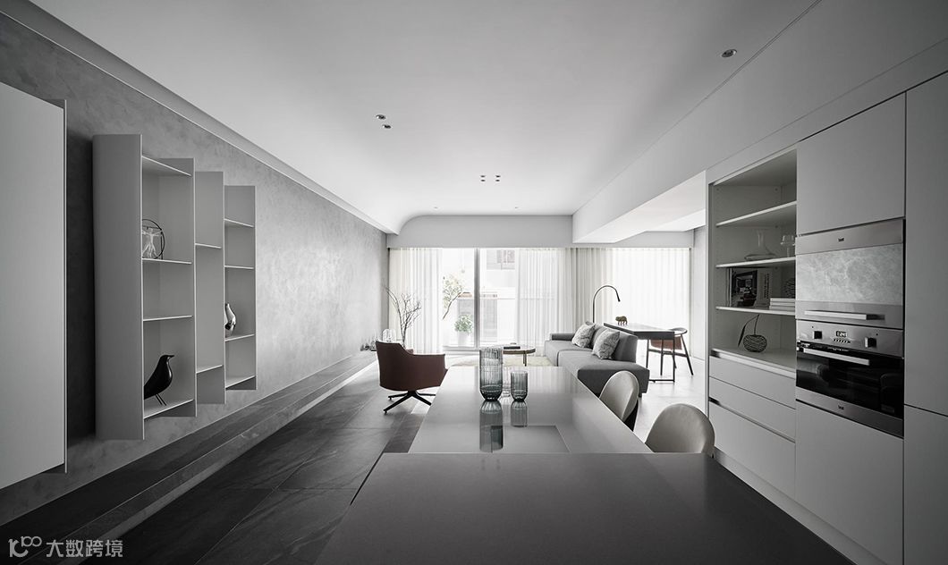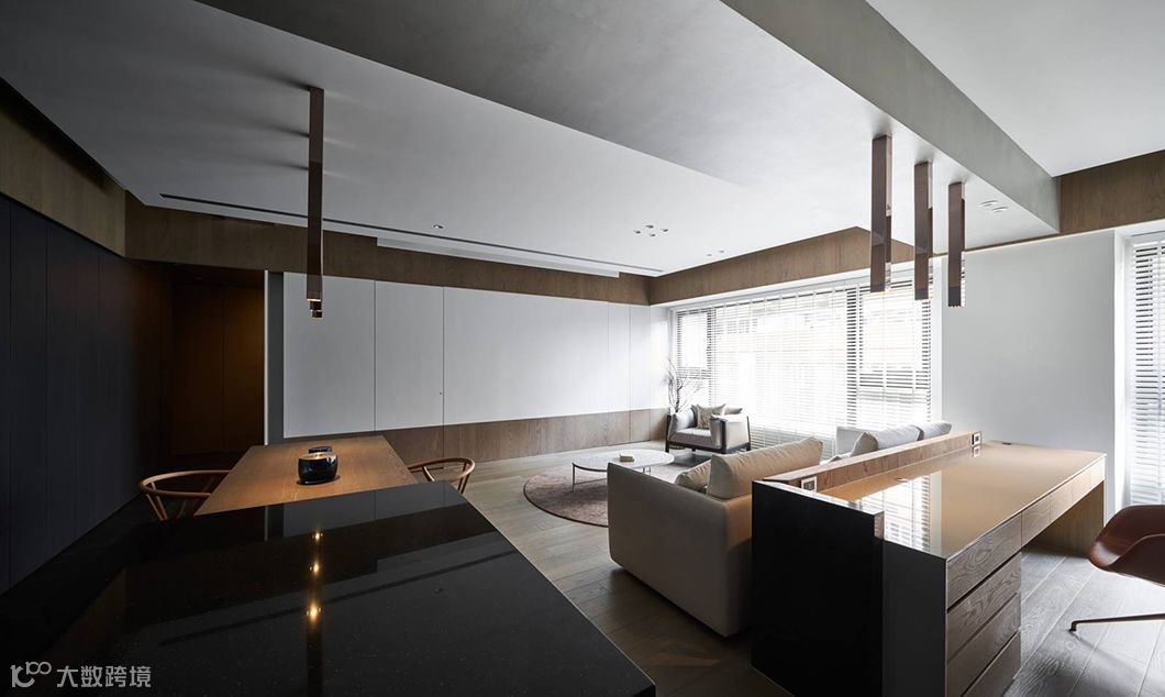 书房与客厅的空间关系模糊了较为生硬的界线期盼使用者能有更多的互动关系;开放式厨房与餐厅的连结使机能更有效率,在整体公共空间各区连结创造了更多生活上的对话。