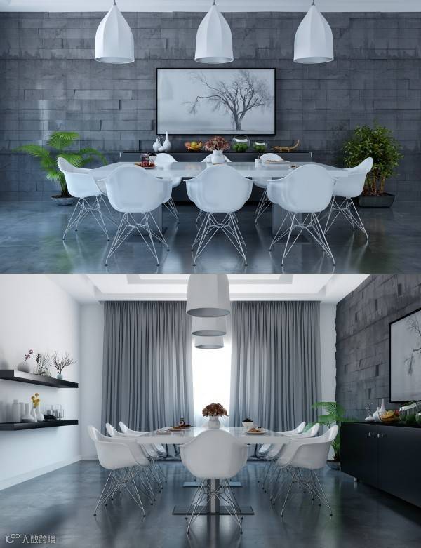 11 | 这个饭厅走的就是极简主义的路线。甚至连餐桌中央,设计师都选择了细长的树枝条而不是锦簇的鲜花。