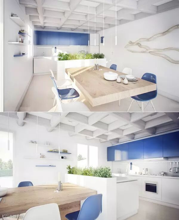 9 | 蓝天,白云,水清沙幼的海——等等,这个蓝白配色的饭厅让你在家中随时体会亲近大海的感觉。