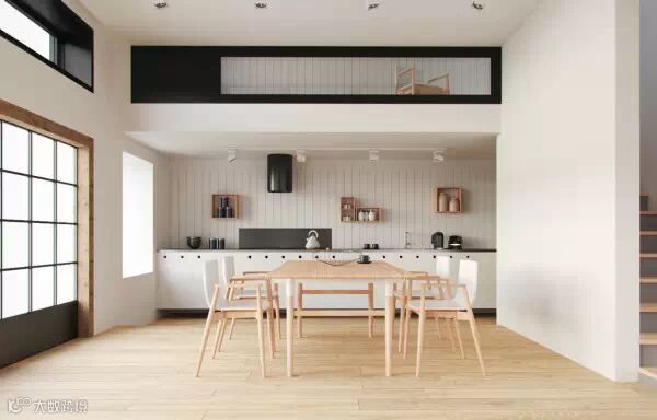 6 | 与浅色木地板同一色调的餐桌和椅子似乎有了“轻”悬空的效果,让整个饭厅看起来更宽敞和舒适。