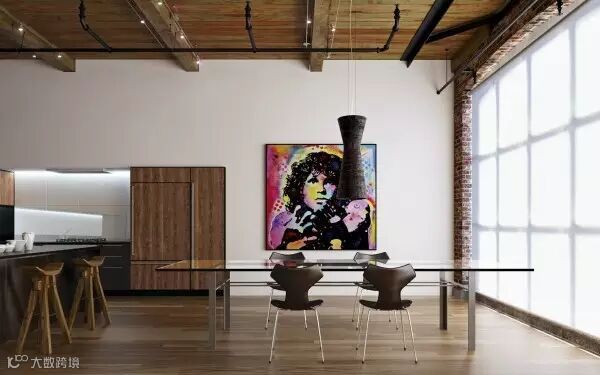 13 | 艺术家们都爱趣味。这个都市风格的饭厅落地窗选择了工业式的网格设计,造型独特的吧台椅和餐椅让整个空间更加的玩味十足。