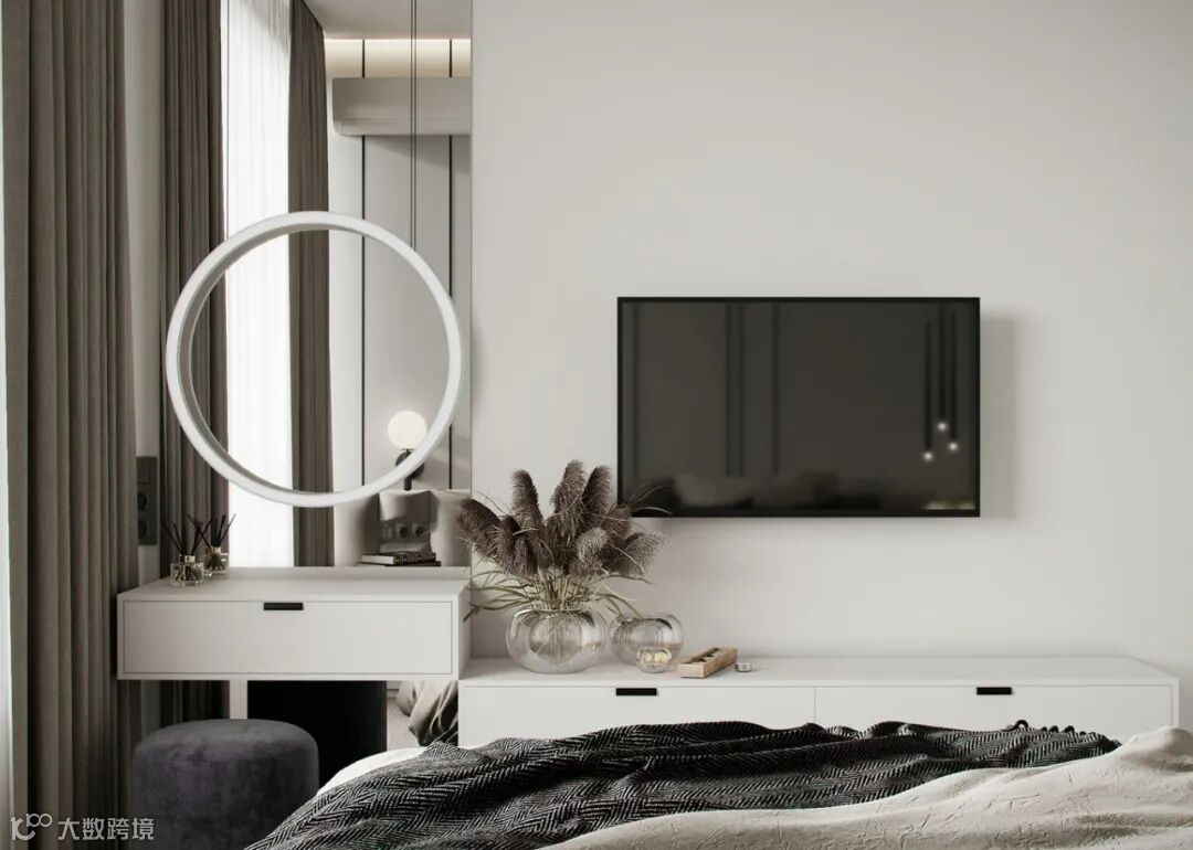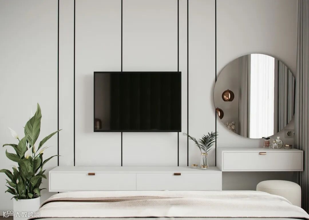 次卧色彩以灰色+绿色,设计以实用为主,没有过多的装饰。