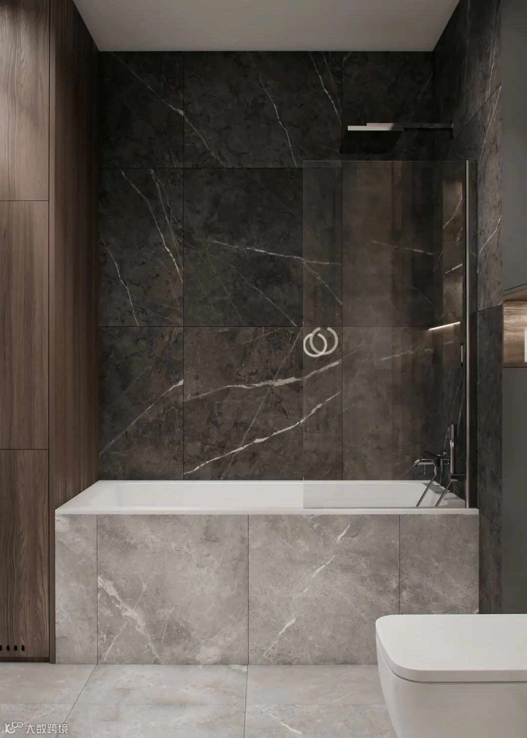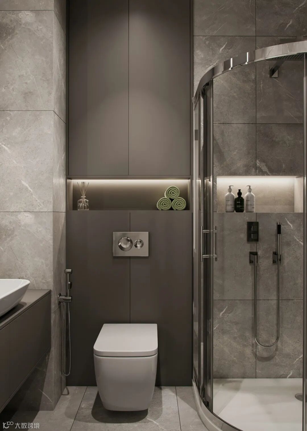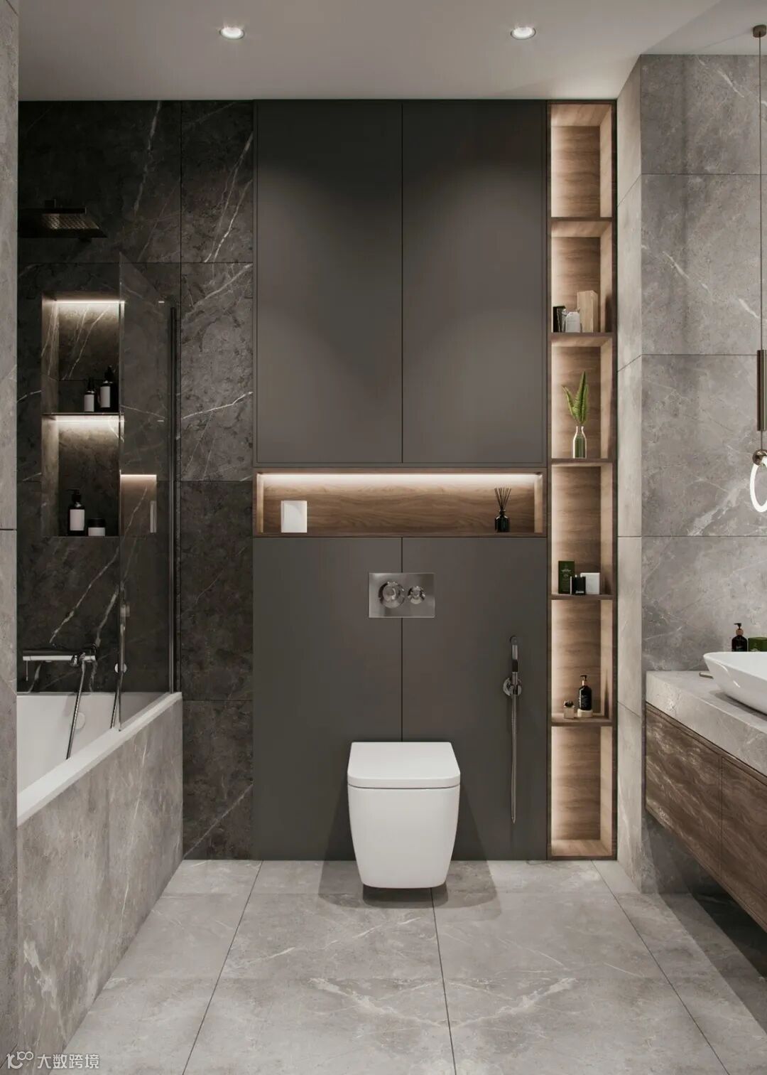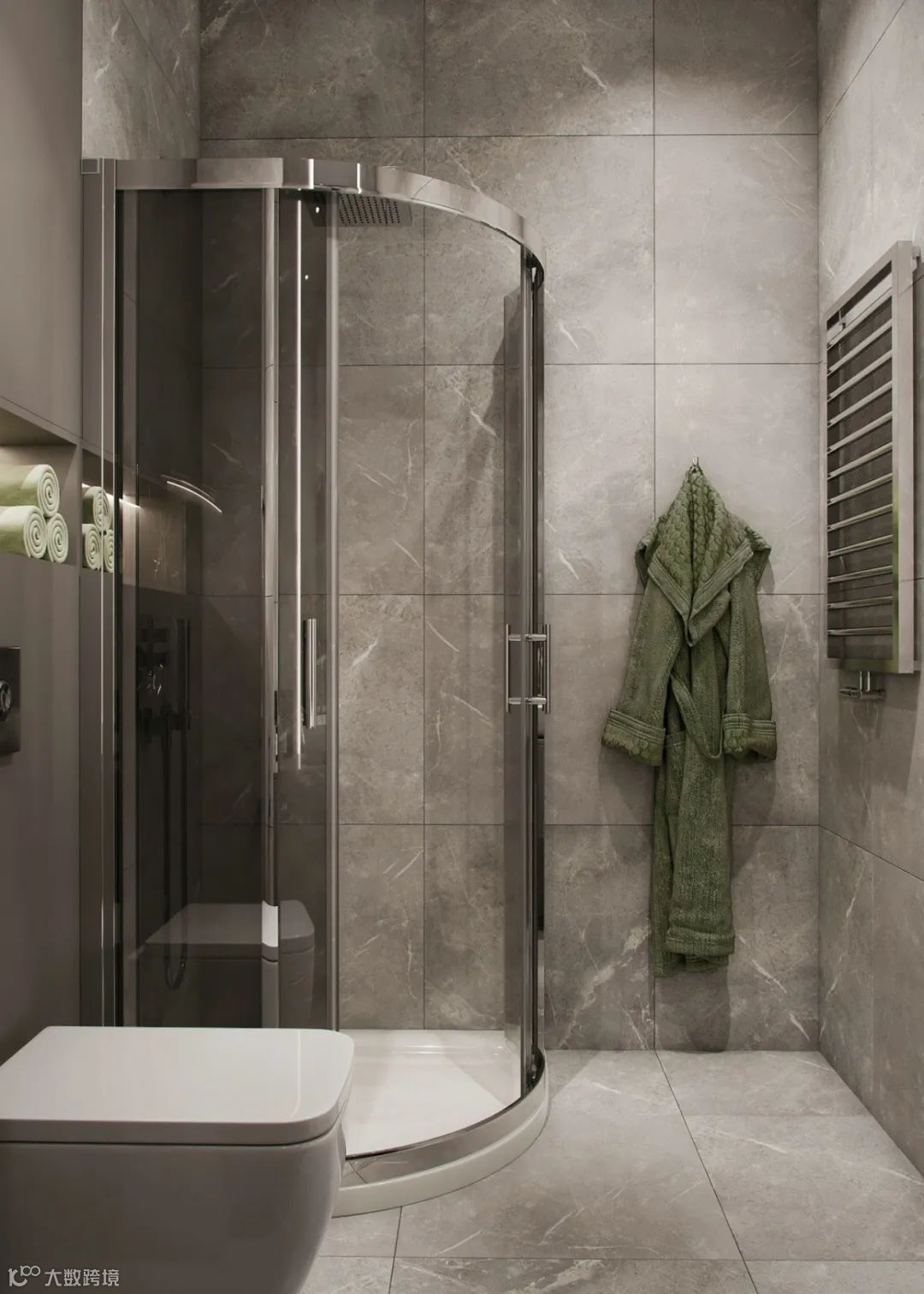 次卫灰色大理石为主绿色点缀,整体高档大气。