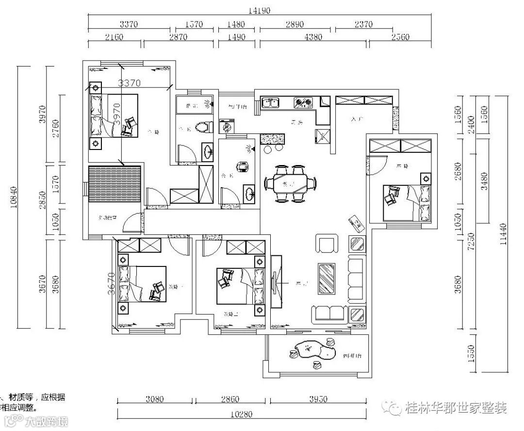 [案例看点] 漓江郡府11栋01户型丨123㎡丨古韵中式