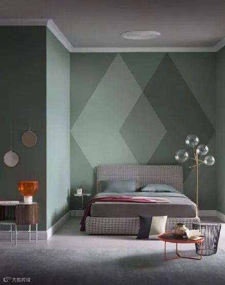 那么,直接在墙面上来大面积的几何图形,算得上是容易操作又有视觉冲击的一波操作了。