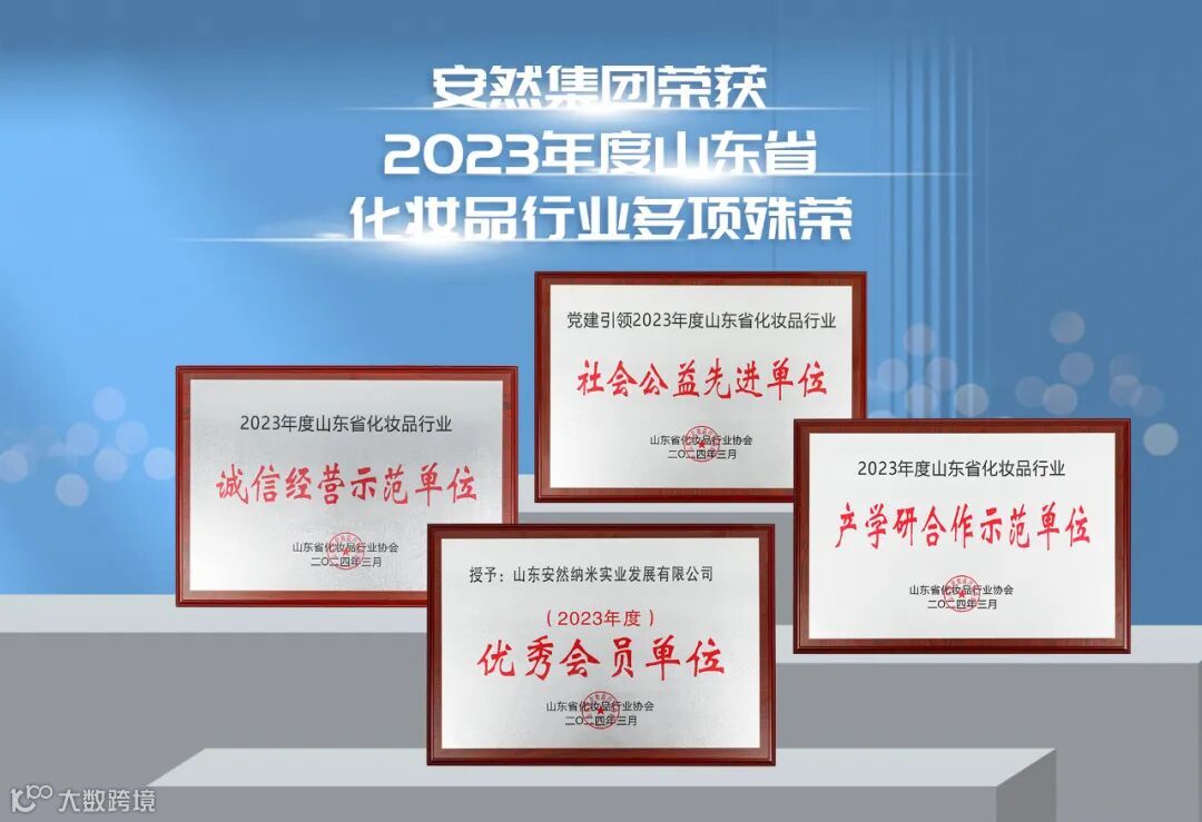 安然集团在会上荣获2023年度山东省化妆品行业多项殊荣,包括: