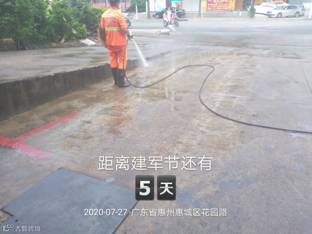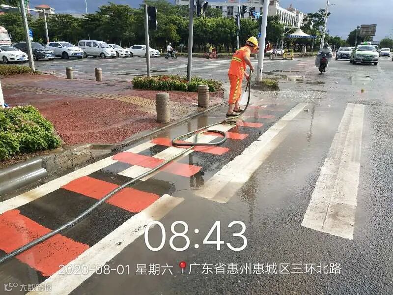 (冲洗人行道安全岛三角位置泥沙)