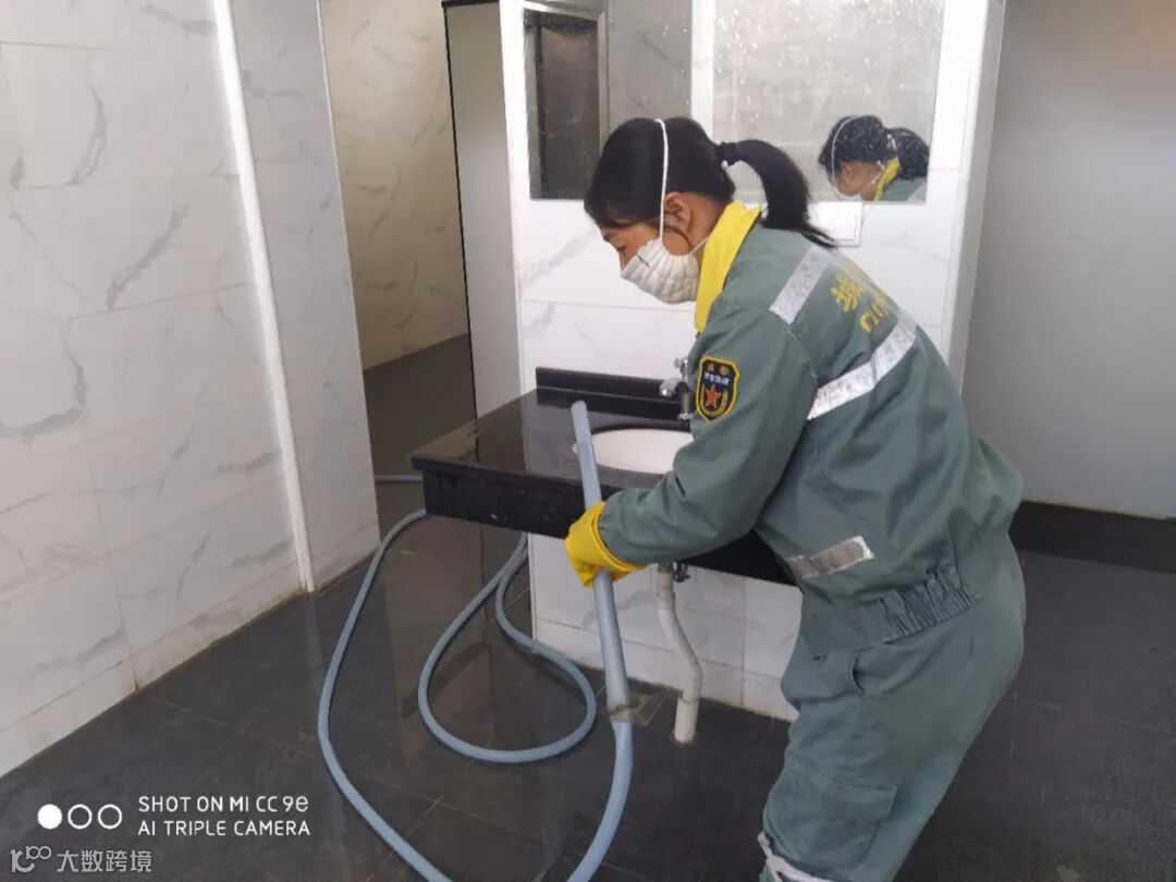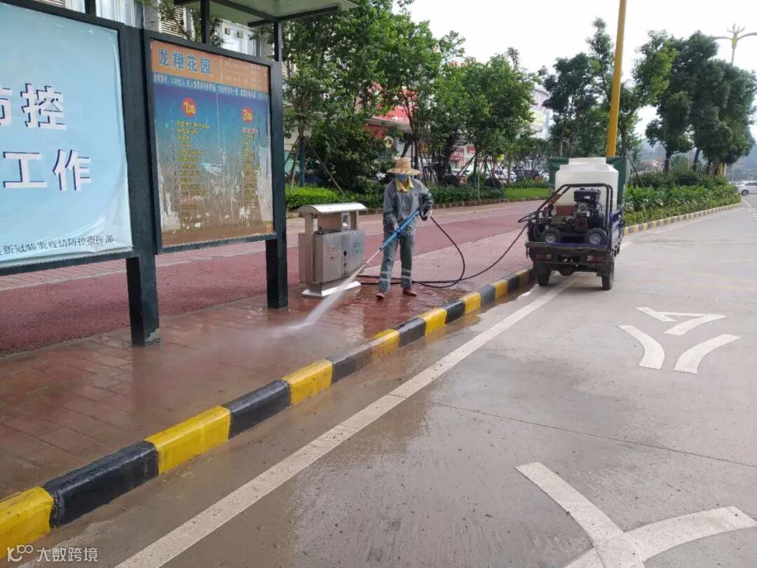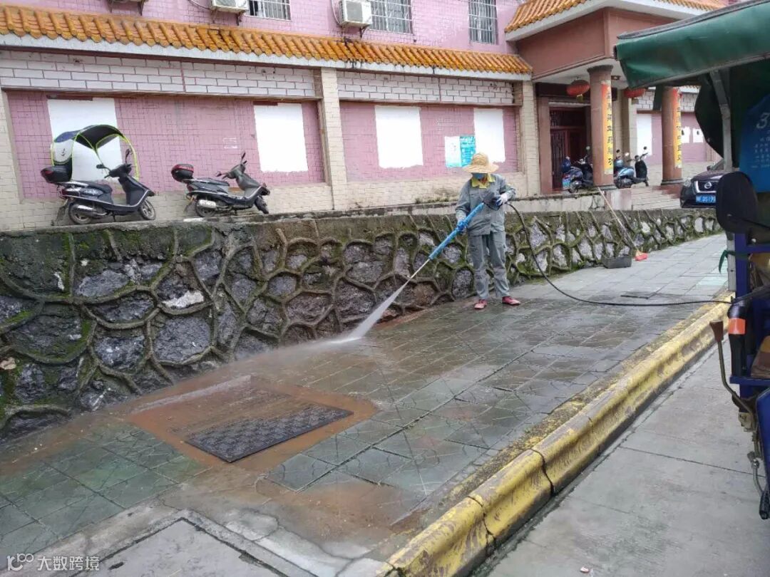 坚持每天2次对县区环卫设施及公厕、人行道、公共场所路面进行清洗、消毒。暴雨后全面冲洗路岩下泥巴及残留余泥。