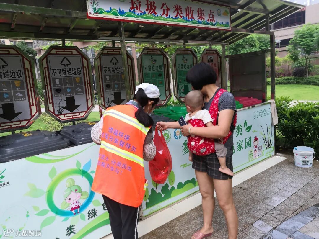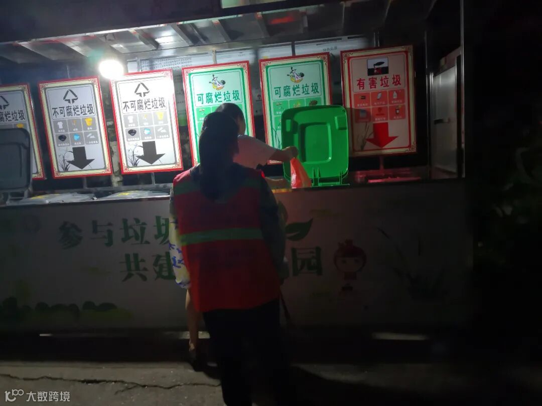 1、劝导员在各试点小区及地税家属、国税家属等收集点守点宣传及破袋, 地税家属住户大部分能做到自主破袋投放。