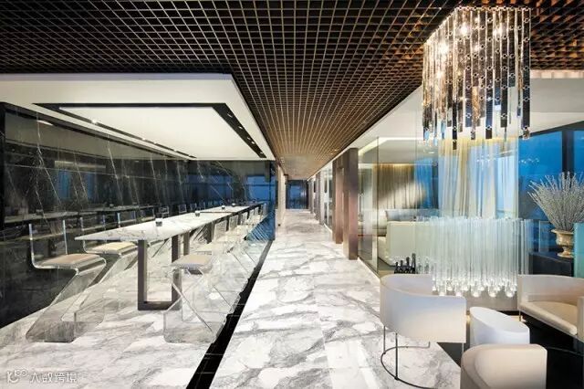 顶面:整体或者局部的吊顶、装饰面、隐藏式的灯光。