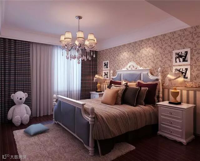 来参观一下简约美式风格两房两厅一卫装修案例的卧室设计。