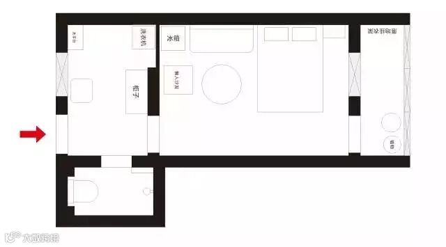 这有限的31㎡空间原先被划分为三重,第一重是卫生间与厨房,第二重是起居室,第三重是阳台。因为第二重空间太大如果是用于自住,难以规划出客厅和卧室私密性无法保障,而且收纳集中在起居室和阳台。
