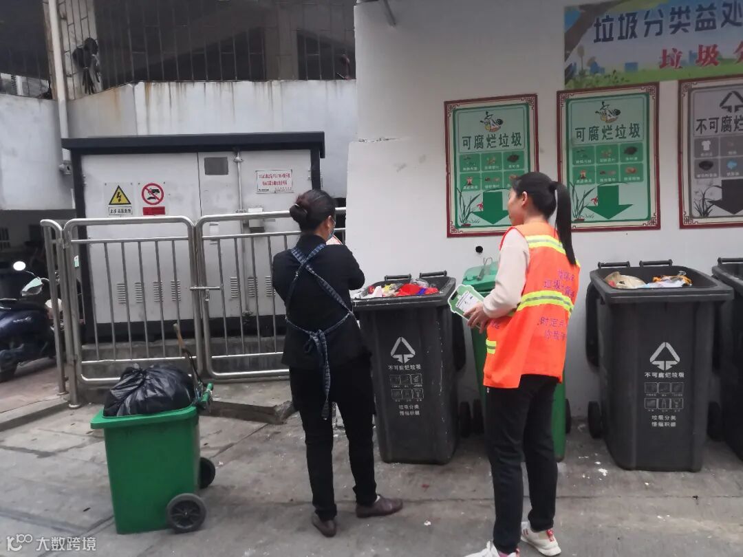 3、安排劝导员在第十五网格四个一试点小区桶点守点宣传,协助第一网格在原城西居委会7栋开展垃圾分类入户宣传。