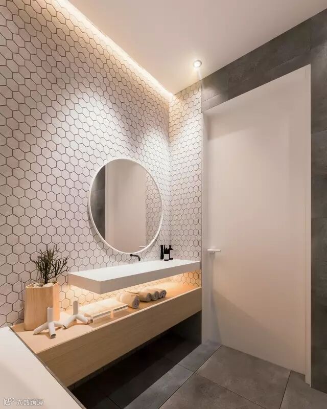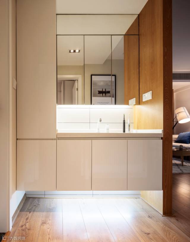 洗漱间中运用木色的家具,简约而大气,给人以纯粹自然的释放空间。