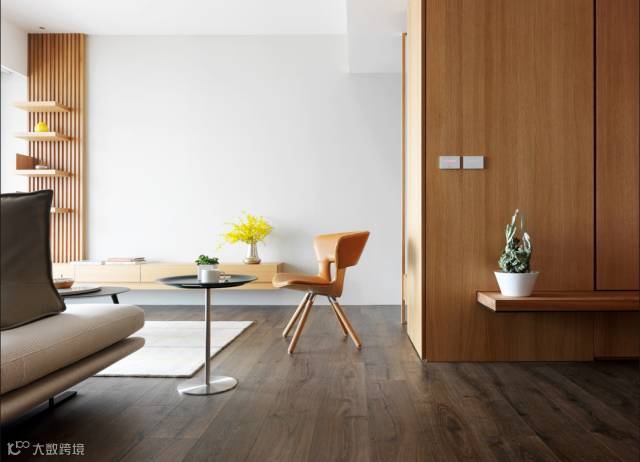 原木,一个朴实生态的元素,当它融入纯白色的现代空间中,不但没有格格不入的生硬感,反而为单调的现代空间加了一抹自然朴素的亮色,木质的纹理不事雕琢却超然脱俗,缔造出一缕回归自然的淡泊心境。