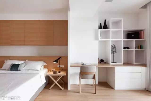 充满暖意的原木家具,清新而又朴实,极净的纯白色空间中调和淡淡的木色,整个空间弥漫着文艺素雅之风。