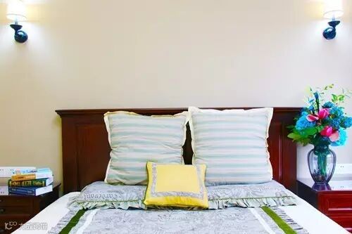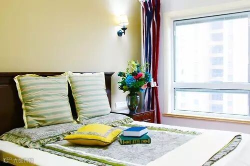 主卧强调睡眠的舒适性。窗帘的线条简约流畅,花艺的点缀使得整个空间温馨浪漫。充分的采光,使整个室内空间宽敞明亮。给主人提供了一个舒适的睡眠环境。