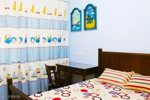 选用淡淡的蓝色作为儿童房的主色调,使整个空间都散发着清新舒爽之气。糖果色的窗帘和床上用品,颜色丰富多彩,使得儿童房生动活泼起来。为孩子营造一个绚丽多彩的成长环境。
