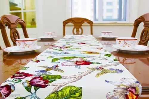 桌布花艺色彩丰富优雅,餐具精致美观。给整个餐区增添了一份浪漫的美式气息~