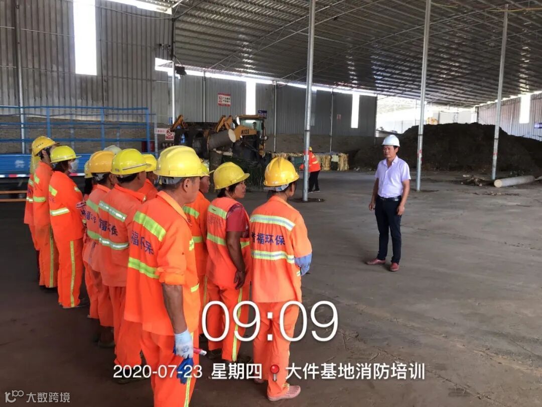 (专业消防员对大件基地司机、收运工及拆解工进行消防安全培训)