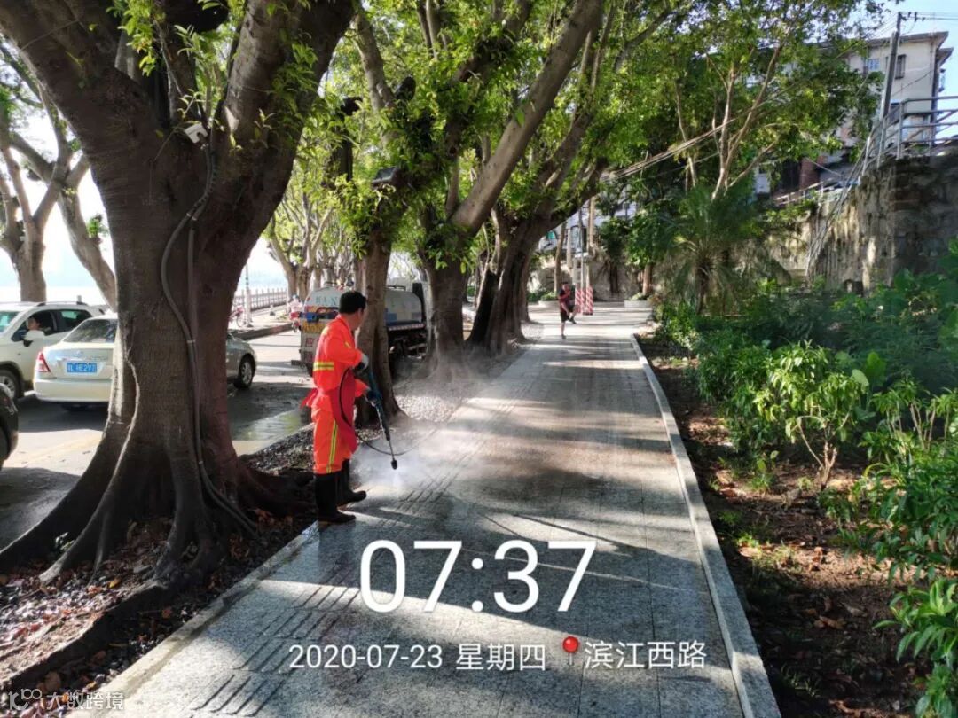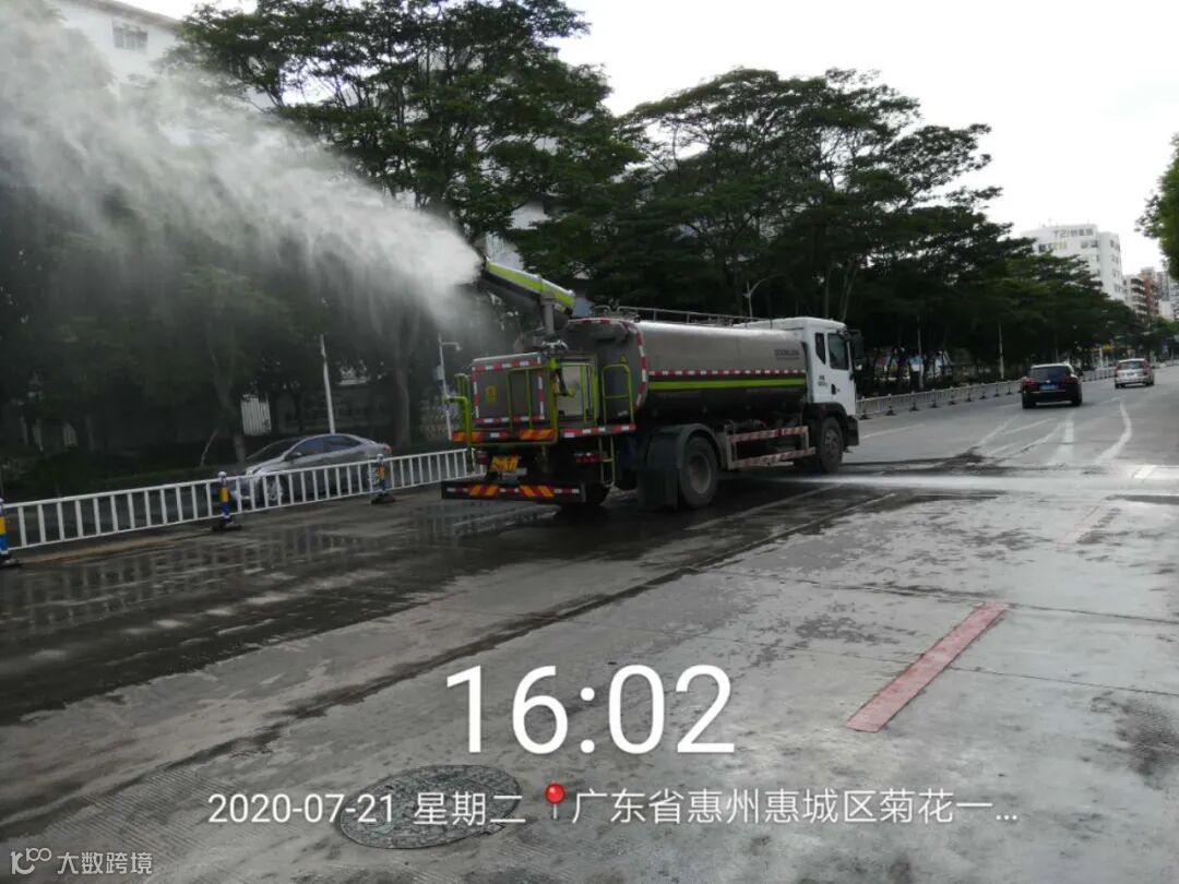 3、雾炮洒水车加强喷雾洒水降尘作业,应对近期高温干燥天气,减少空气扬尘;洗扫车加大城区重点道路及人行道冲洗/清扫力度及频次;