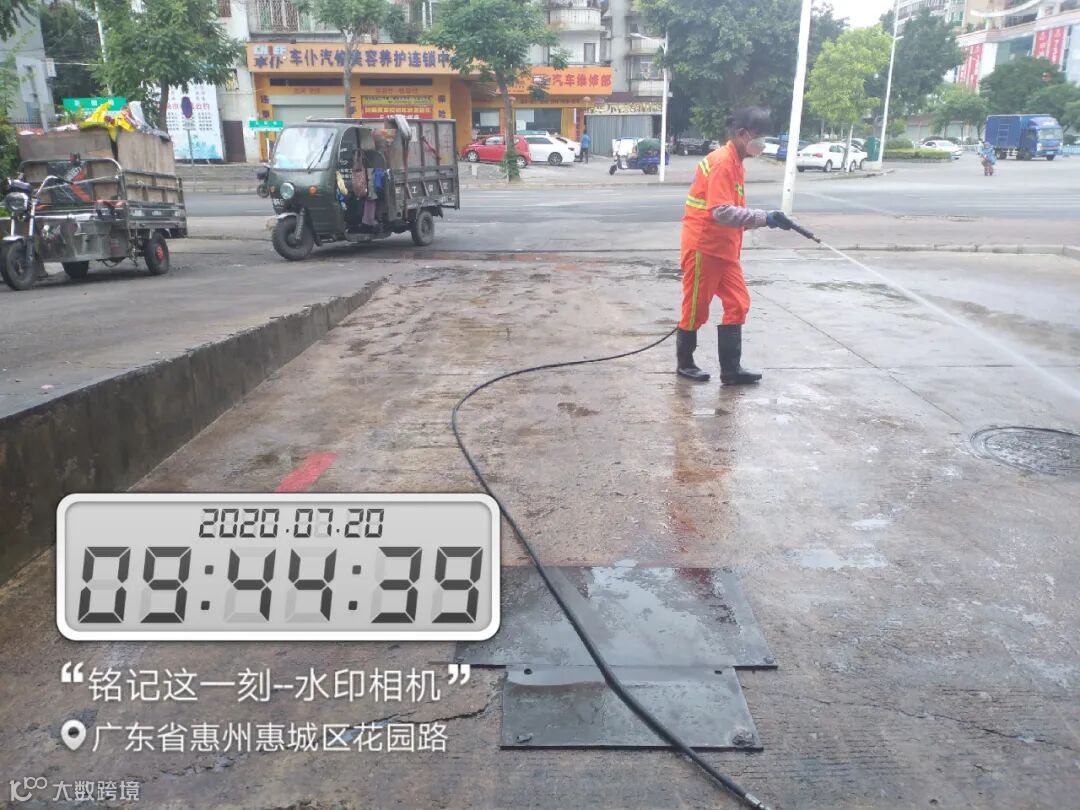 (高压加人工冲洗清扫新湖一路人行道污染点)