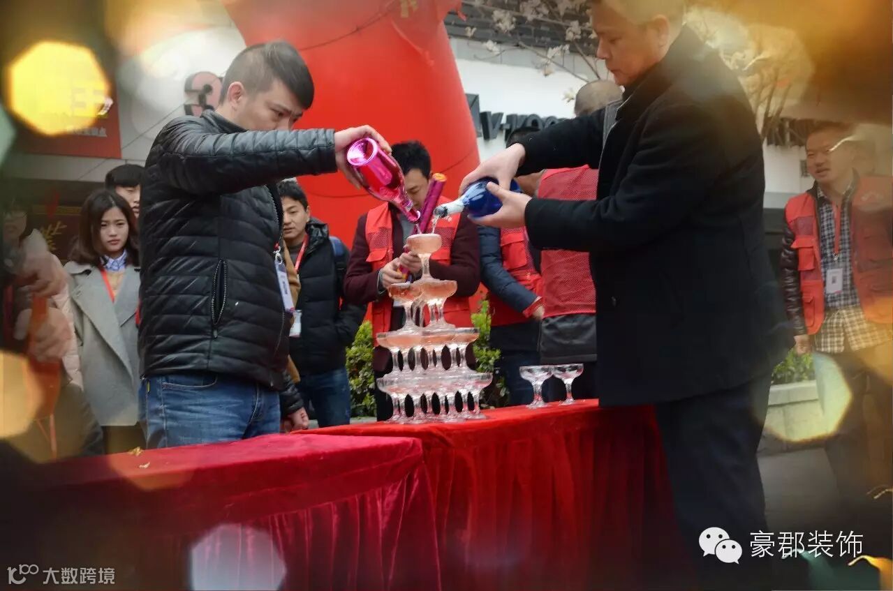 在豪郡装饰家人们的共同努力下,一切工作准备就绪,8:08盛典正式开始了。鲁总开启香槟,恭祝此次盛典圆满成功!感谢业主对豪郡装饰的支持与信任!